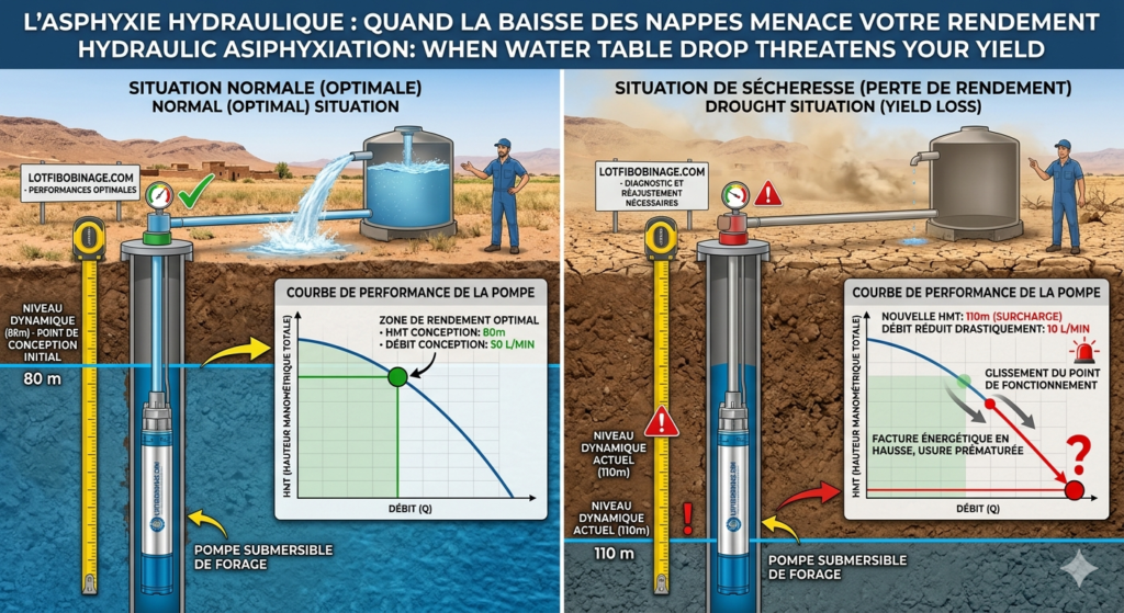 La performance d’une pompe n’est pas un chiffre gravé dans la pierre ; c’est un équilibre délicat entre la force du moteur et la réalité du terrain. Aujourd’hui, avec le recul des nappes phréatiques dans notre région, cet équilibre est de plus en plus menacé.